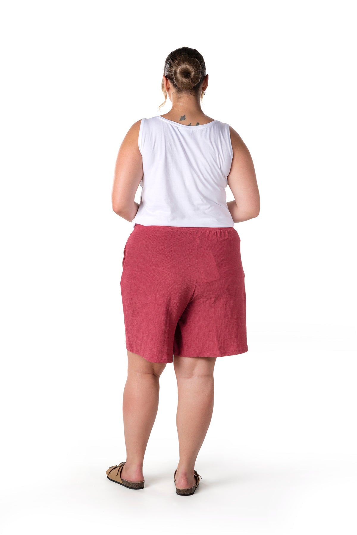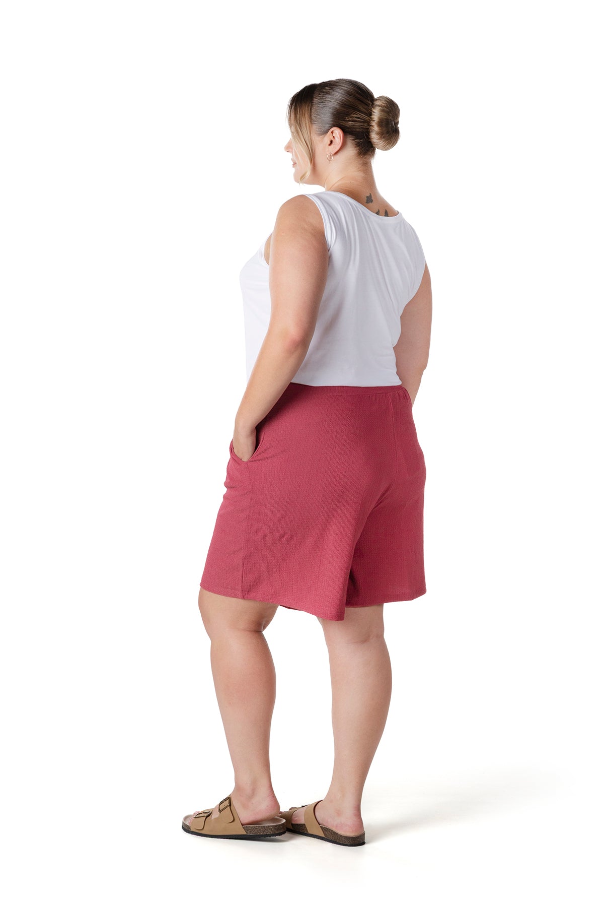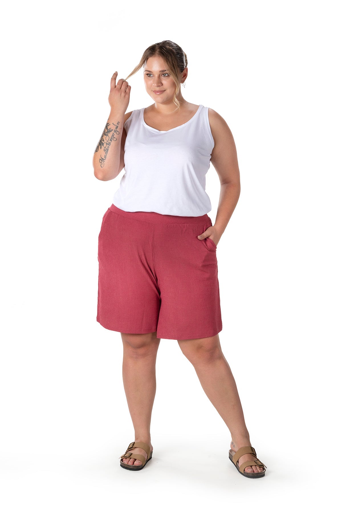 Moda Notu: Yaz aylarının vazgeçilmezi olan bu şort, beli lastikli ve cepli tasarımıyla hem konfor hem de pratiklik sunuyor. Basic bir atlet ve sandaletlerle kombinleyerek rahat ve şık bir yaz stili yaratabilirsiniz.