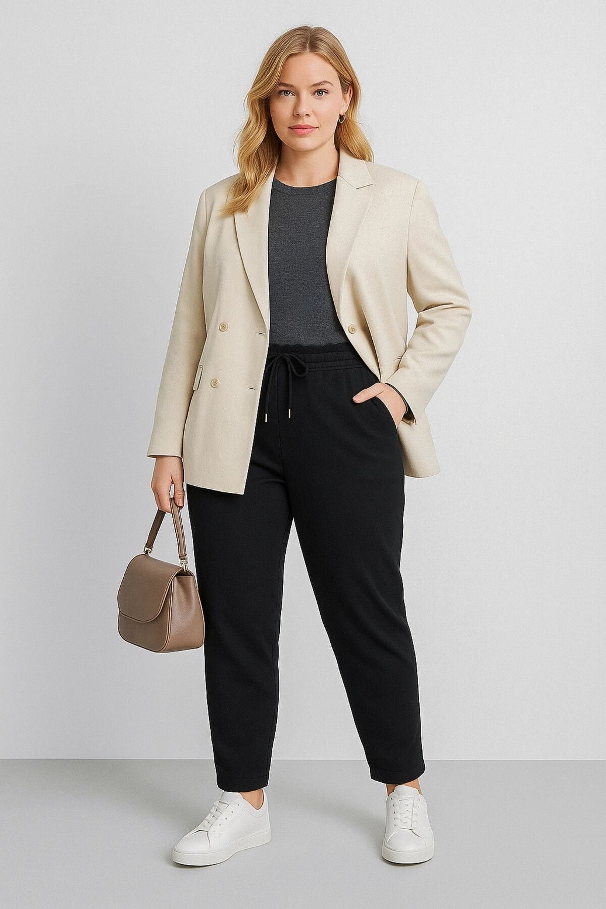 Moda Notu: İster günlük işlerinizi hallederken ister evde dinlenirken konforunuzdan ödün vermeyin. Basic bir tişört, spor ayakkabı ve bir kot ceket ile kombinleyerek zahmetsiz ve şık bir görünüm elde edebilirsiniz.