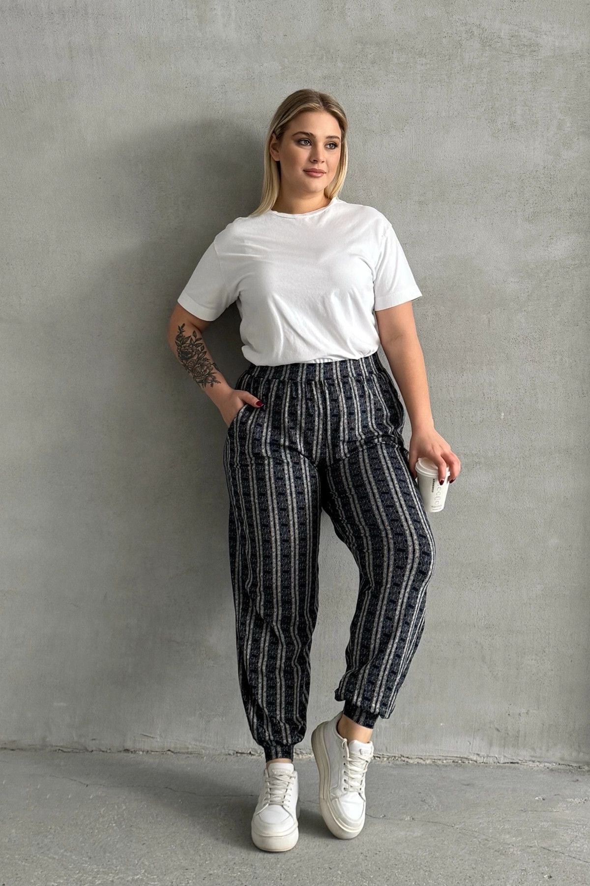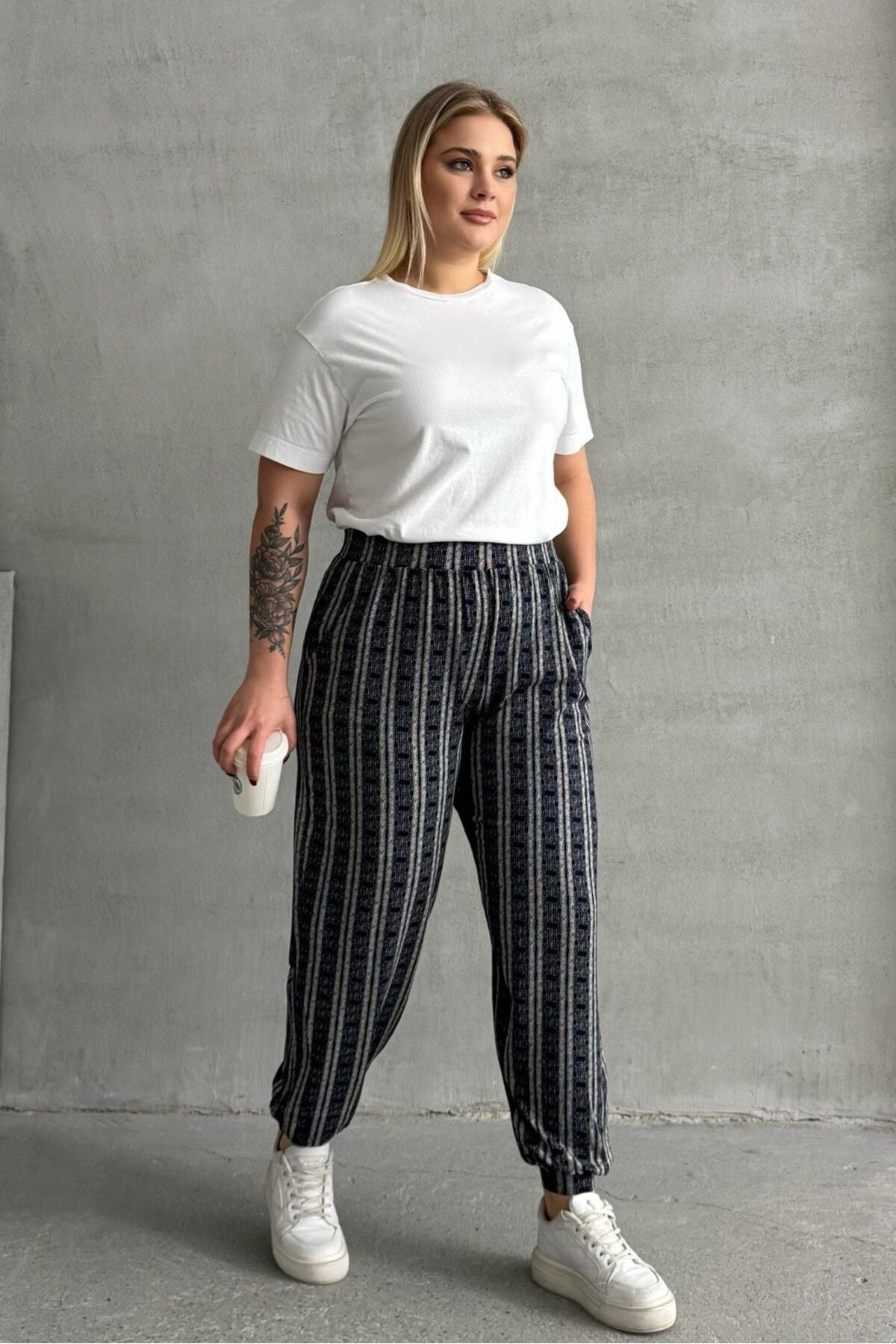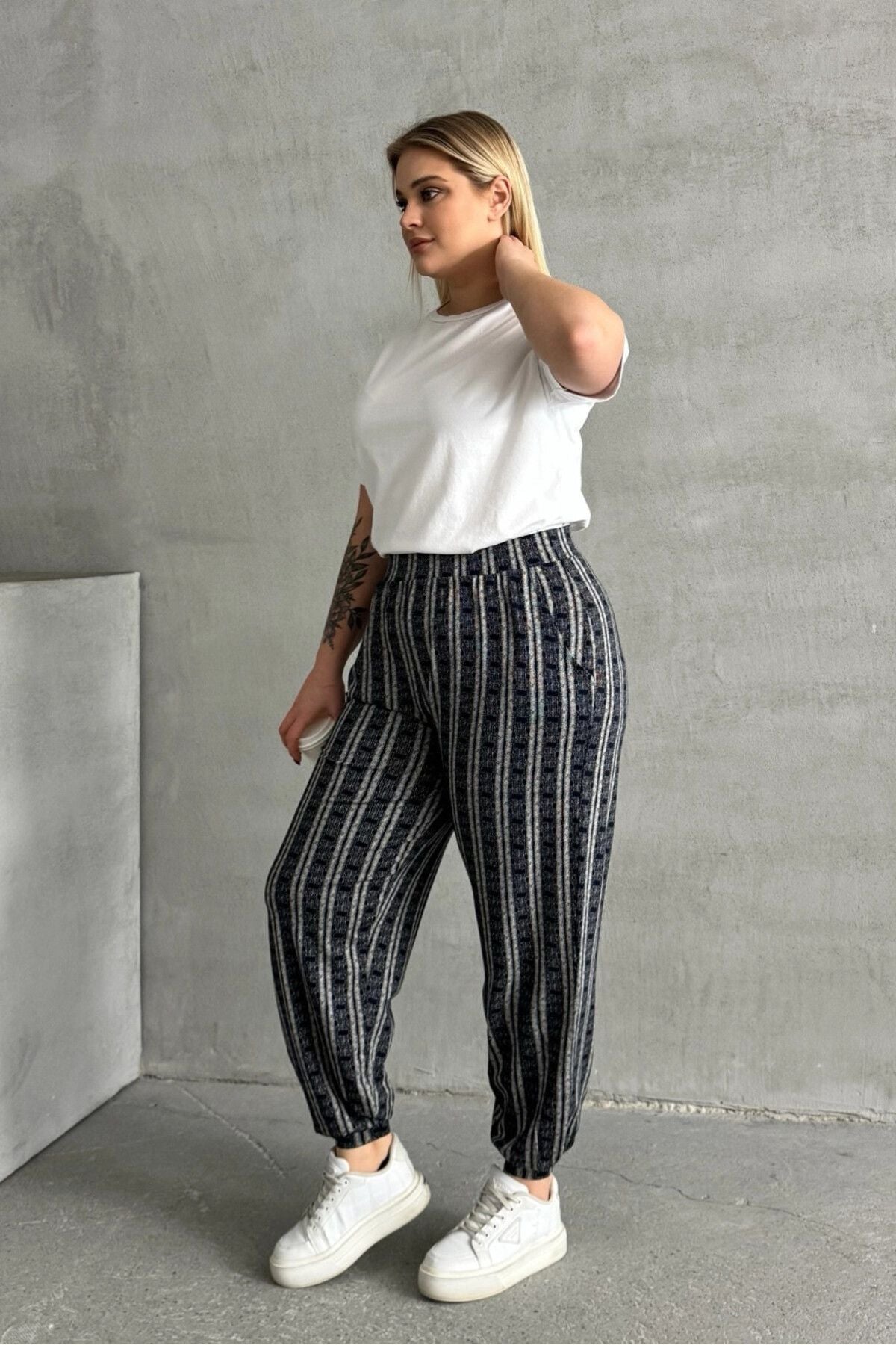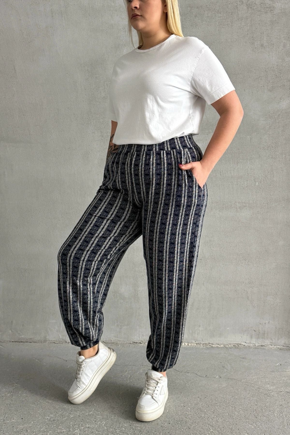 Moda Notu: Rahatlığı ve modern tasarımı bir araya getiren bu büyük beden pantolon, beli ve paçası lastikli yapısıyla hareket özgürlüğü sunar. Şık çizgili deseni ve fonksiyonel cepleriyle günlük kullanım için hem şık hem de pratik bir tercih. Spor veya casual kombinler için ideal bir tamamlayıcı!