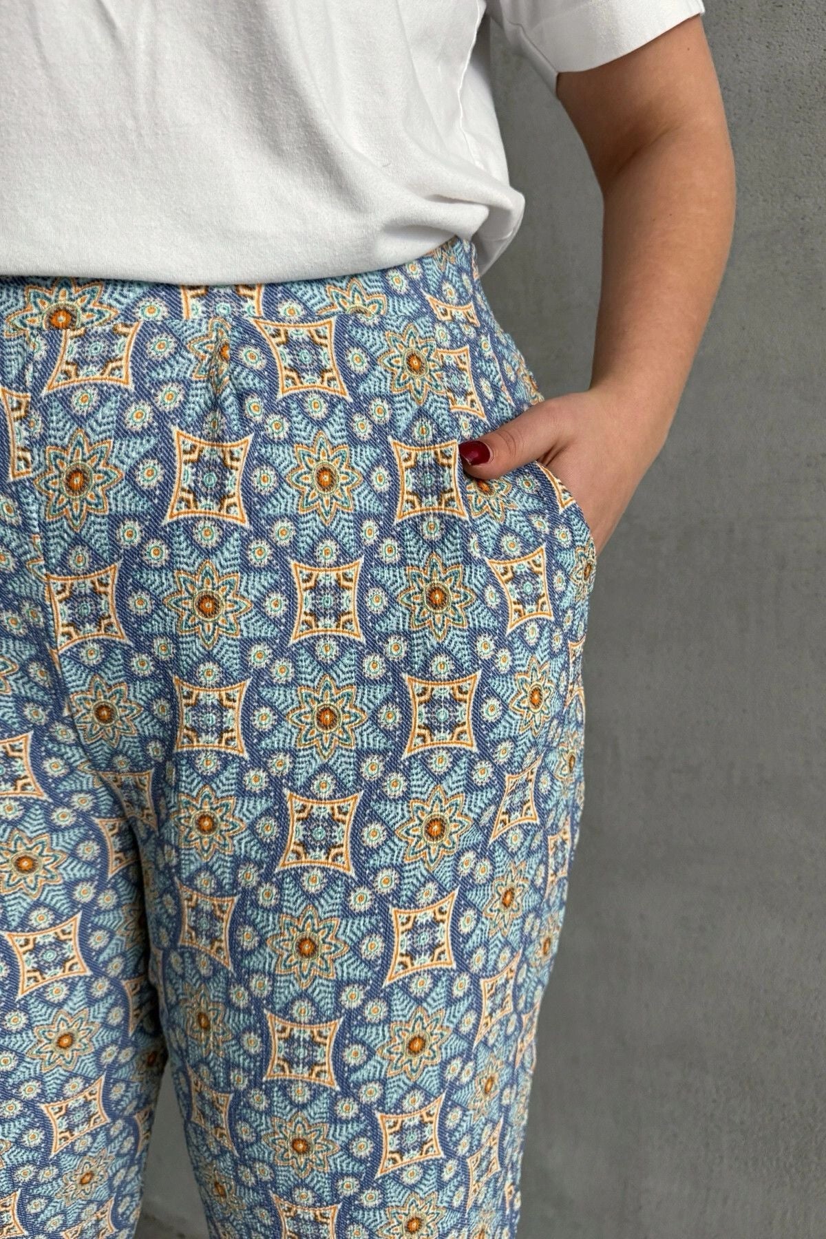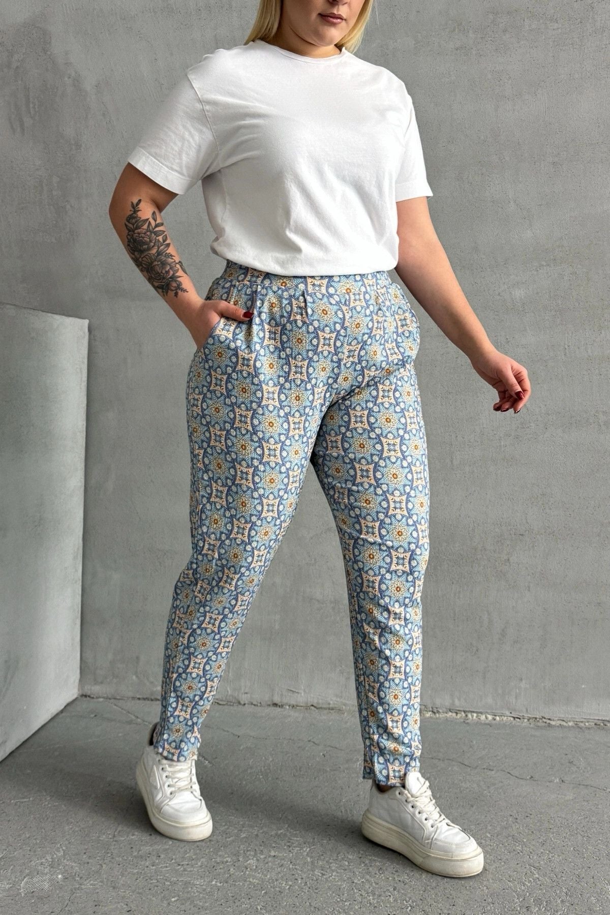 Büyük Beden Beli ve Paçası Lastikli Desenli Cepli Pantolon 303490