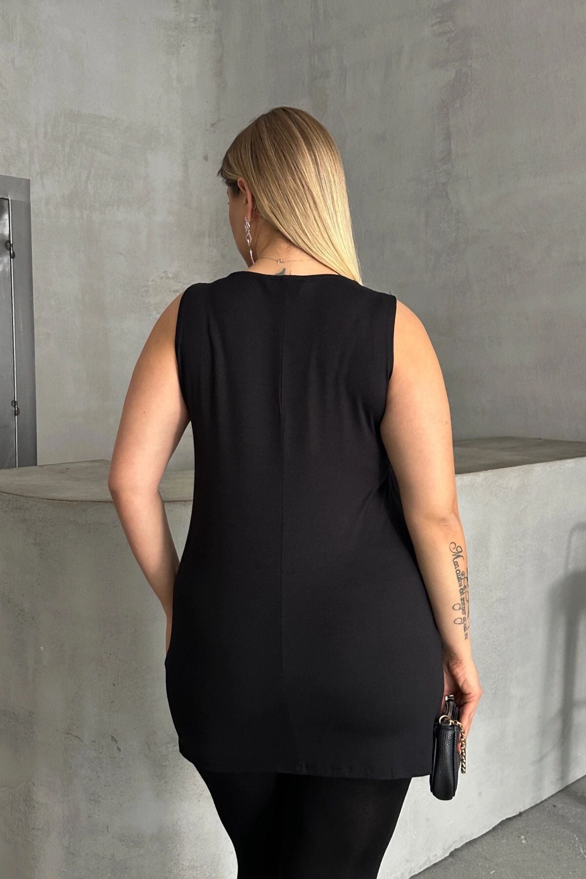 Büyük Beden Bisiklet Yaka Kolsuz Payetli Bluz 303102