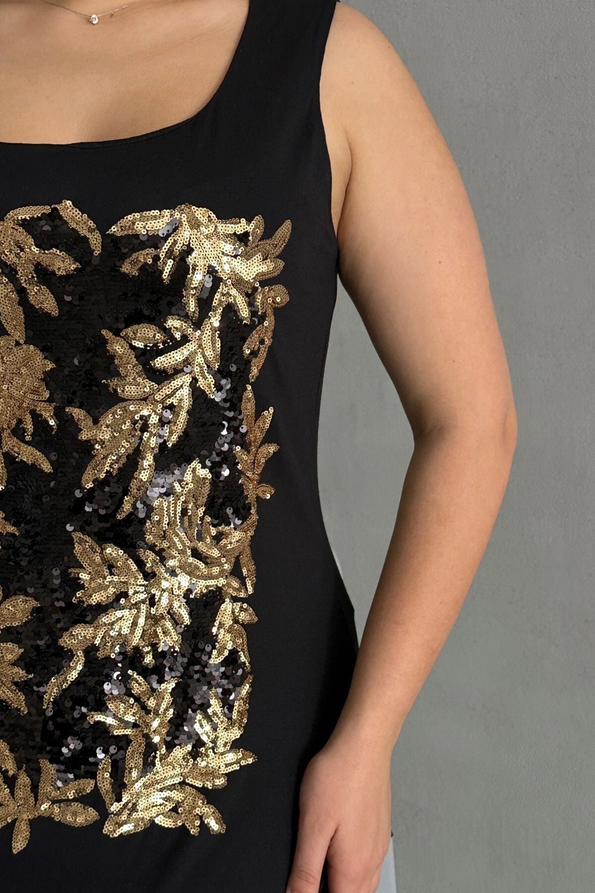 Moda Notu: Göz alıcı payet işlemeleriyle her ortamda parlamanızı sağlayacak bu şık atlet, gardırobunuza ışıltı katacak. Tayt veya dar paça pantolonlarla kombinleyerek hem şık hem de konforlu bir stil yaratabilirsiniz.