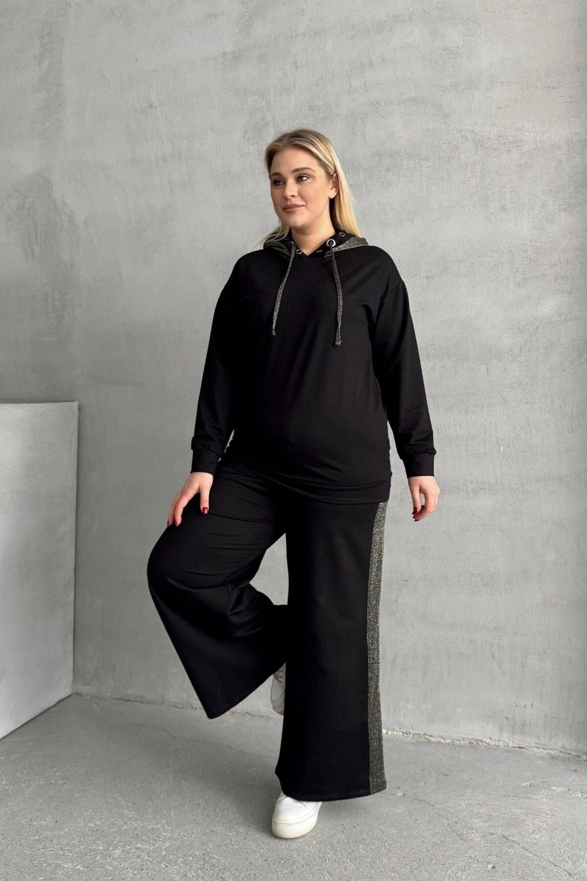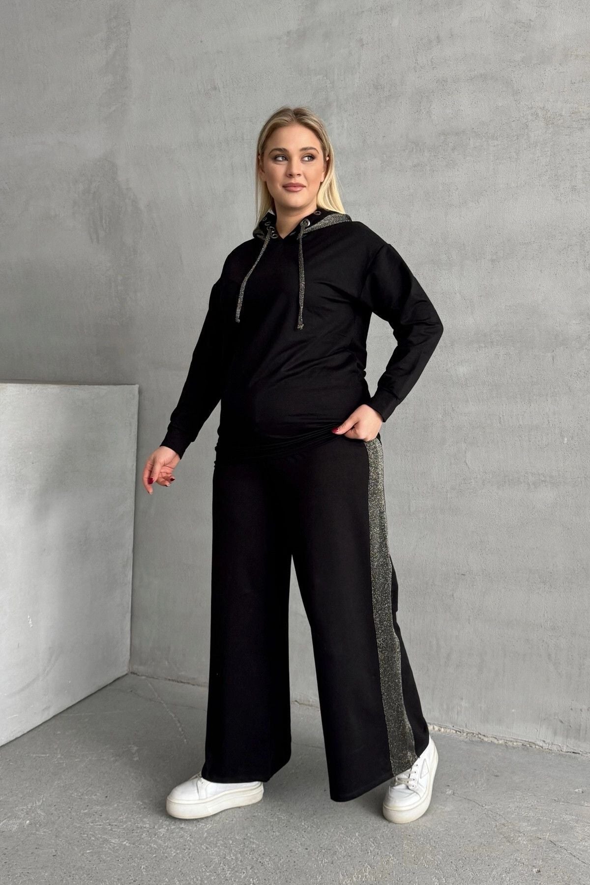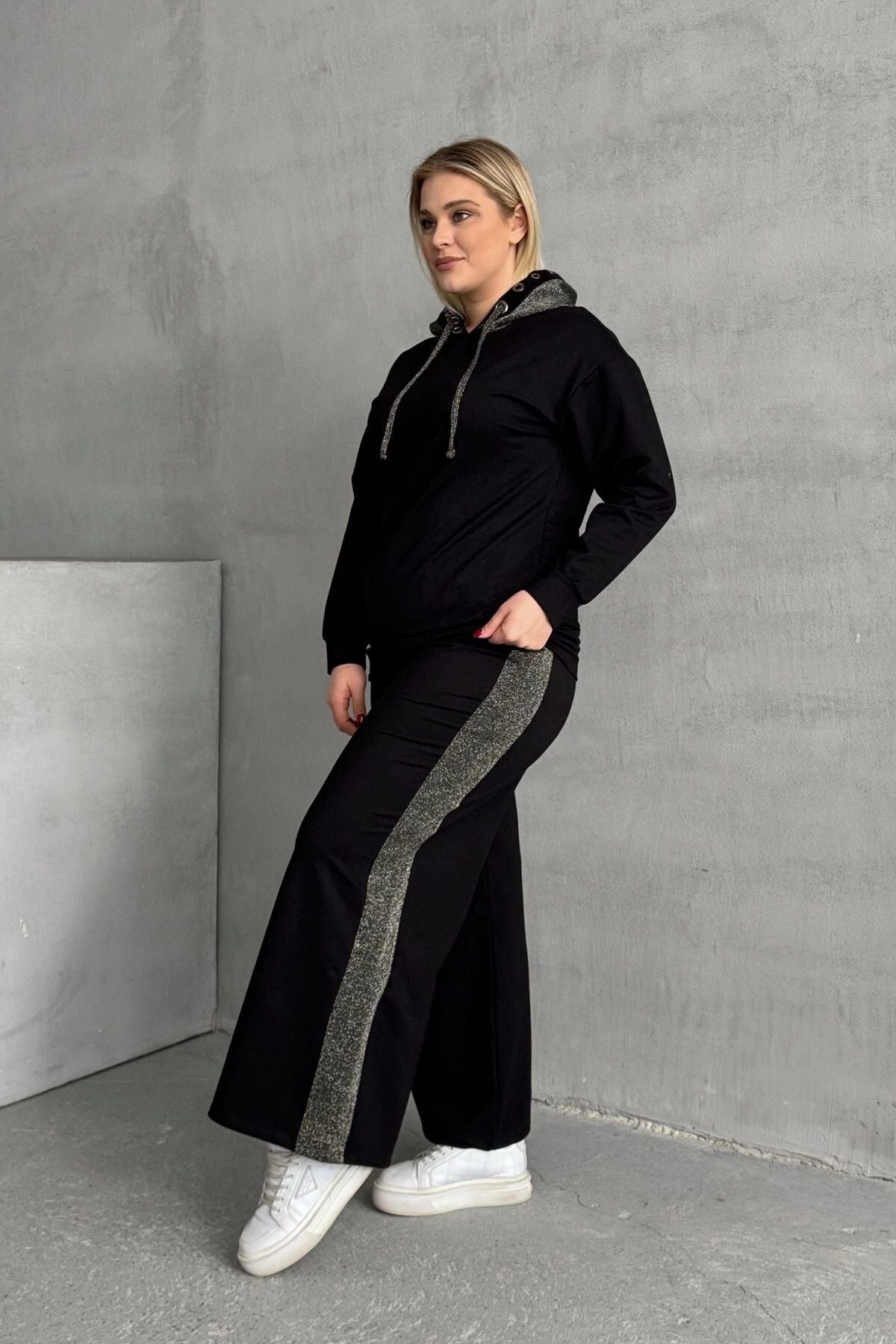 Model Detayı: Geniş Paça, Yanları Simli Şeritli Eşofman Altı