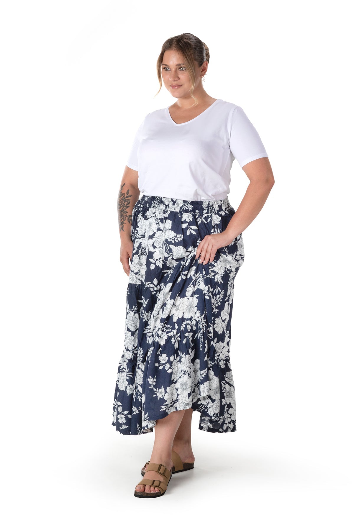 Büyük Beden Çiçek Desenli Beli Listekli Bileli Uzun Etek T-14