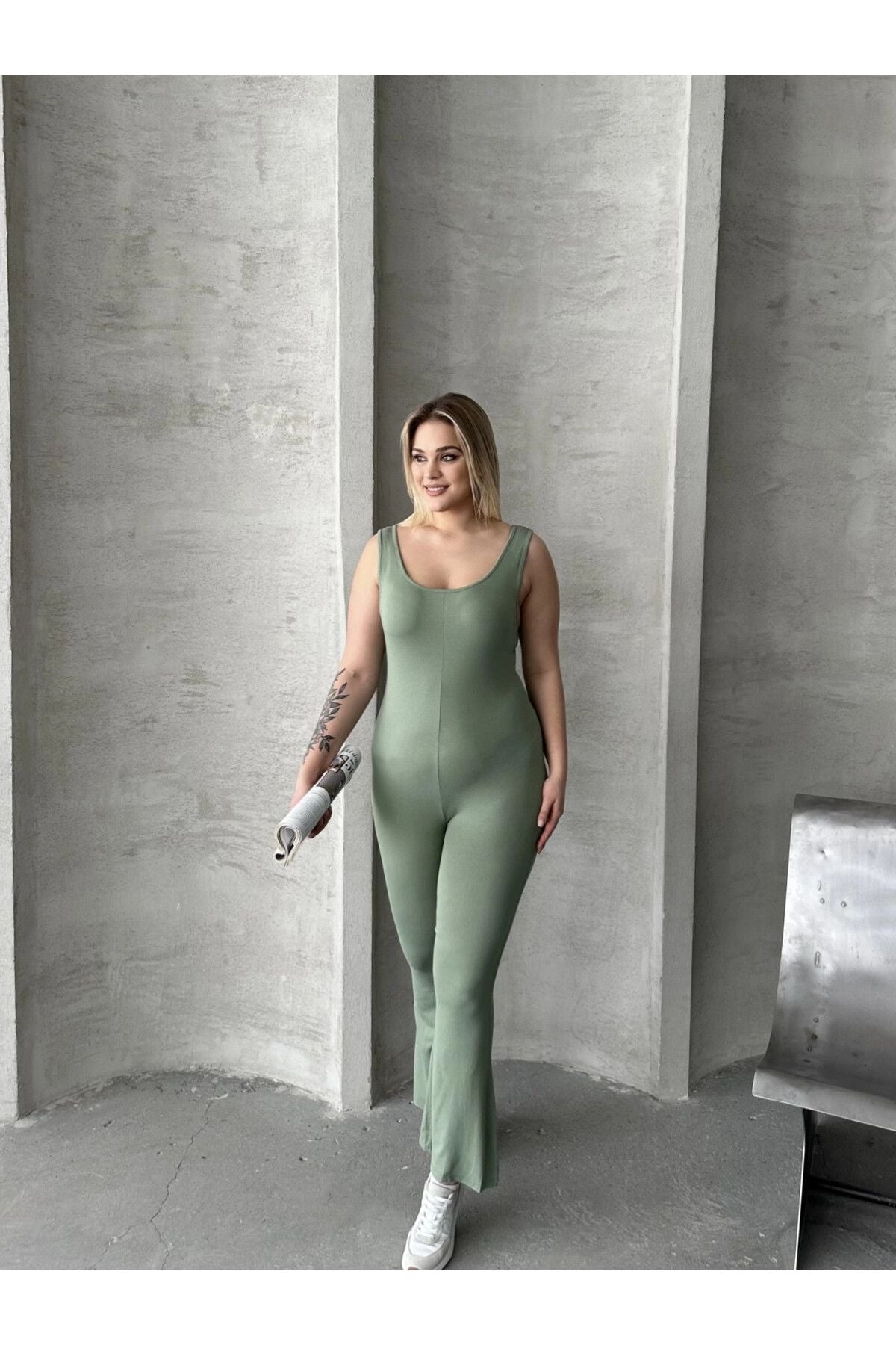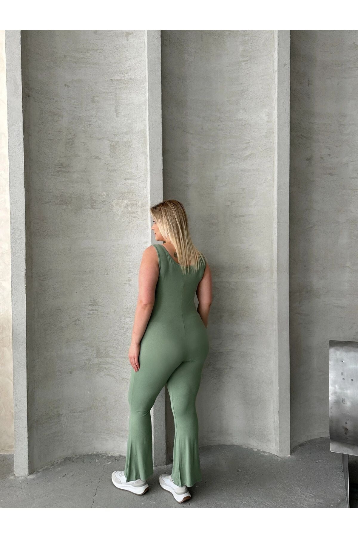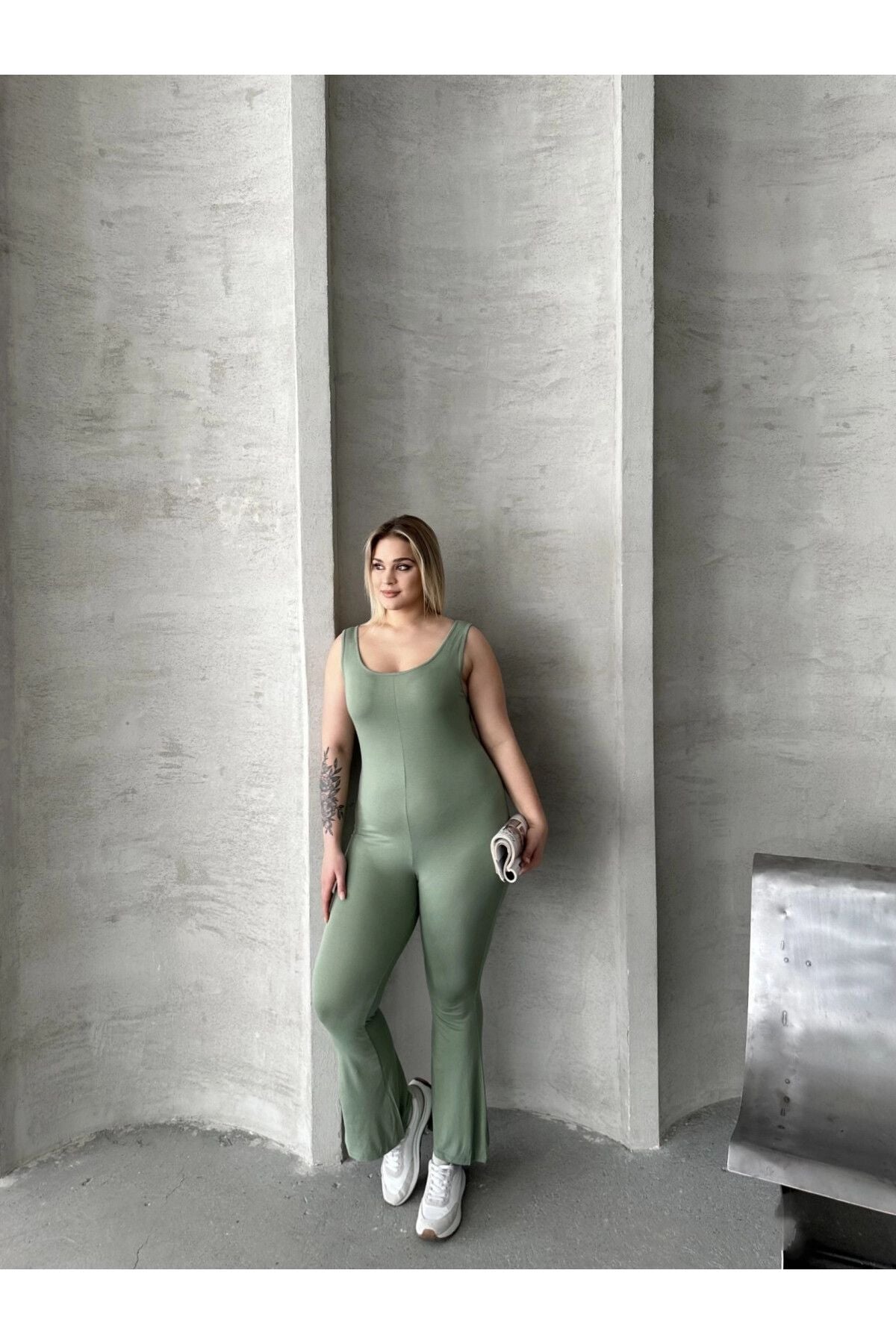 Moda Notu: Günlük tarzınızı bu şık ispanyol paça tulumla yükseltin. Yumuşak jersey kumaştan üretilen bu tulum, ispanyol paça kesimi, yuvarlak yaka ve kolsuz tasarımıyla öne çıkar. Rahat günlerinizde ulaşacağınız trend bir görünüm için sadece spor ayakkabılarla kombinleyin. Sage yeşili rengiyle doğal ve modern bir hava katan bu tulum, hem konforlu hem de şık bir seçenek sunar. Vücut hattını takip eden kalıbı ile feminen bir görünüm sağlarken, ispanyol paça kesimi retro bir dokunuş katıyor. Hem günlük kullanımda hem de özel etkinliklerde rahatlıkla tercih edebileceğiniz çok yönlü bir parça. Makinede yıkanabilir özelliği ile bakımı da kolaydır.