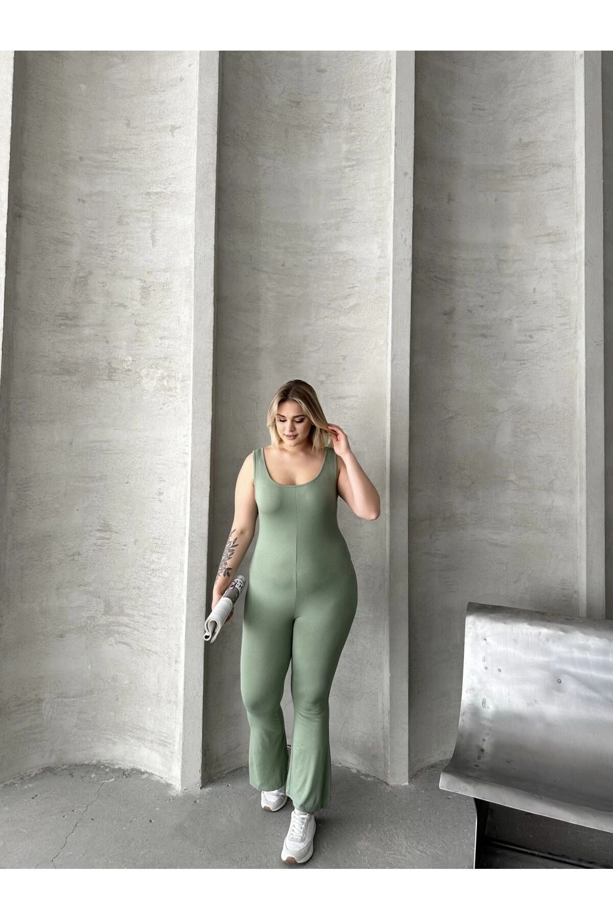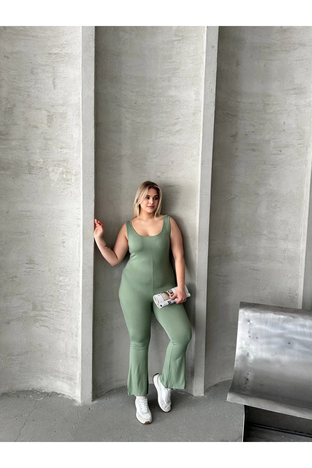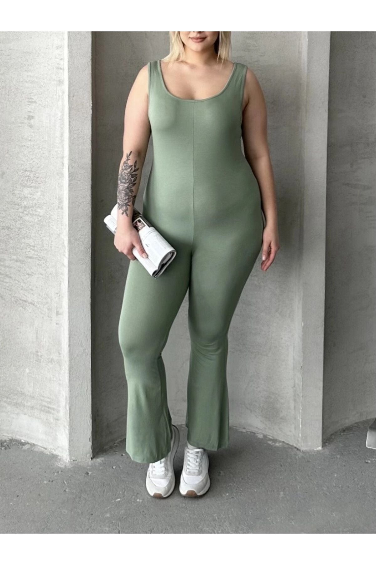 Moda Notu: Günlük tarzınızı bu şık ispanyol paça tulumla yükseltin. Yumuşak jersey kumaştan üretilen bu tulum, ispanyol paça kesimi, yuvarlak yaka ve kolsuz tasarımıyla öne çıkar. Rahat günlerinizde ulaşacağınız trend bir görünüm için sadece spor ayakkabılarla kombinleyin. Sage yeşili rengiyle doğal ve modern bir hava katan bu tulum, hem konforlu hem de şık bir seçenek sunar. Vücut hattını takip eden kalıbı ile feminen bir görünüm sağlarken, ispanyol paça kesimi retro bir dokunuş katıyor. Hem günlük kullanımda hem de özel etkinliklerde rahatlıkla tercih edebileceğiniz çok yönlü bir parça. Makinede yıkanabilir özelliği ile bakımı da kolaydır.