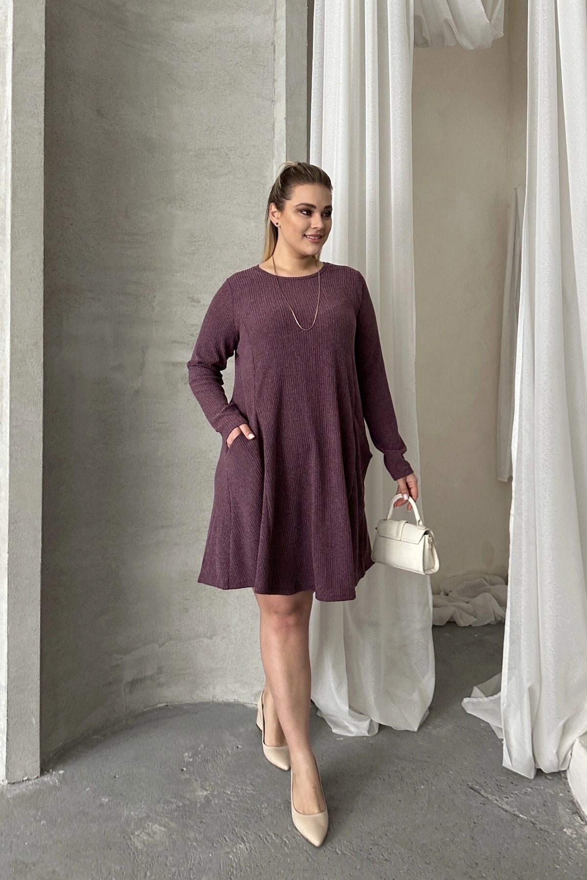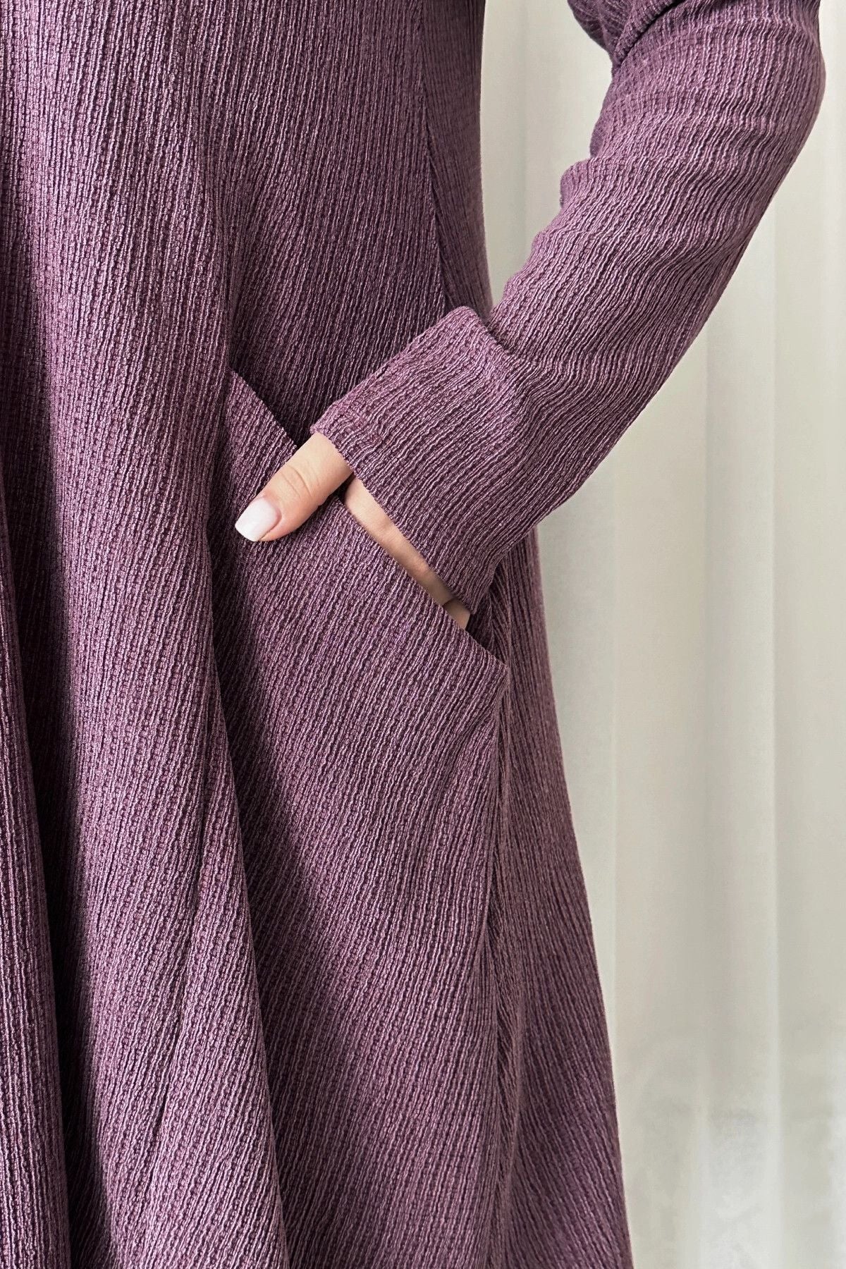 Fitilli dokunun modern şıklığını ceplerin fonksiyonelliği ile birleştiren bu elbise, gündelik stilinizin favorisi olmaya aday. Bisiklet yaka ve rahat kesimiyle gün boyu konfor sunarken, şık bir görünümden ödün vermemenizi sağlar. Makinede yıkanabilir olmasıyla da kullanım kolaylığı sunan bu pratik parçayı, dolabınızdan eksik etmek istemeyeceksiniz.