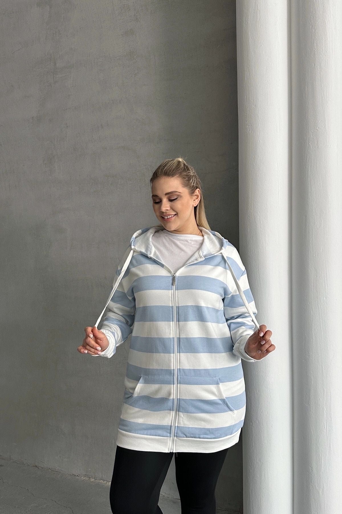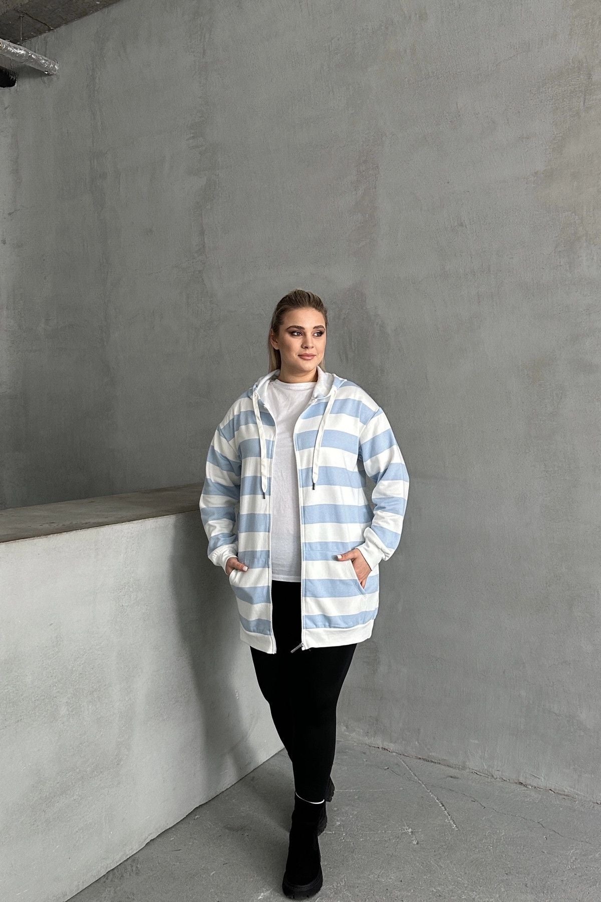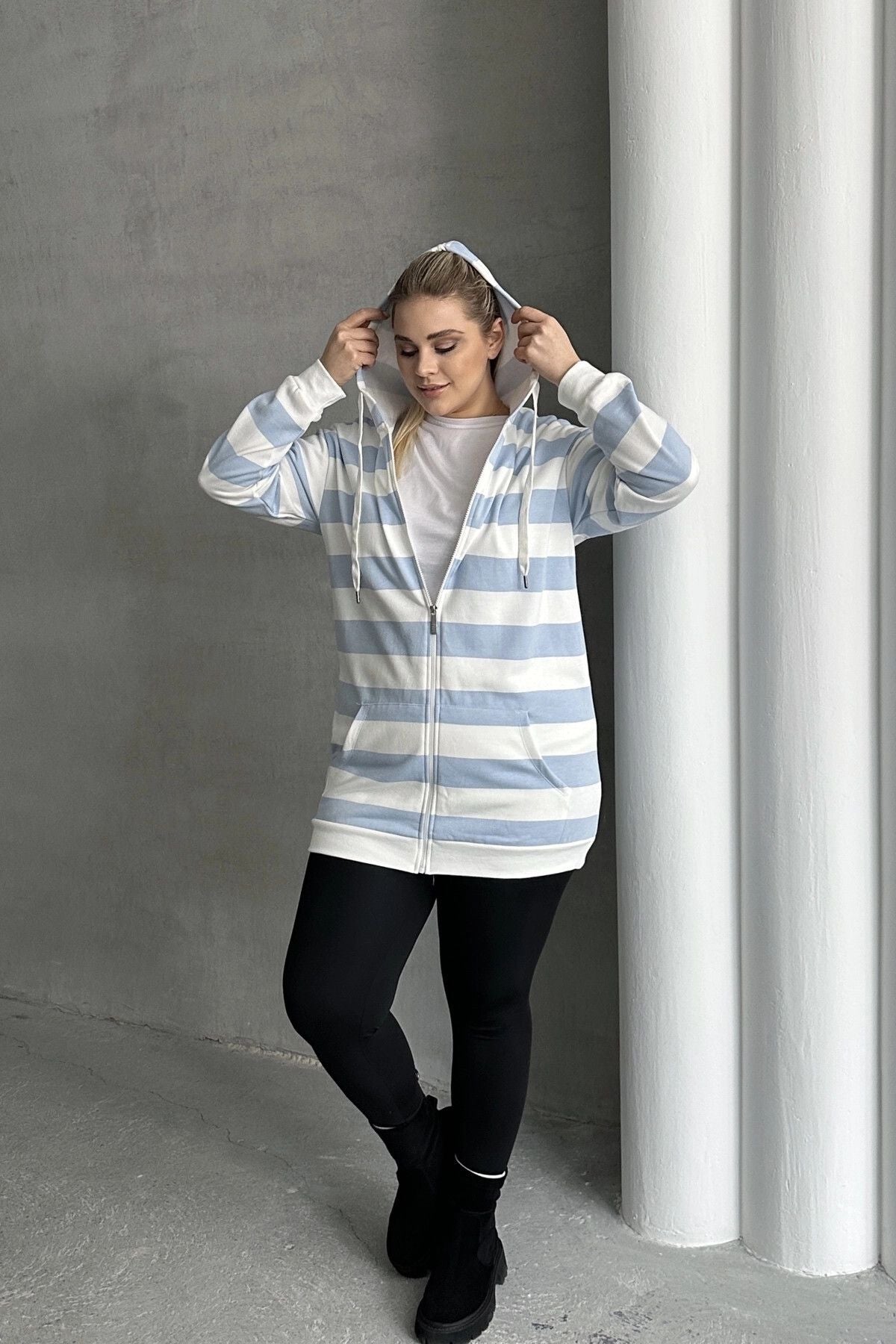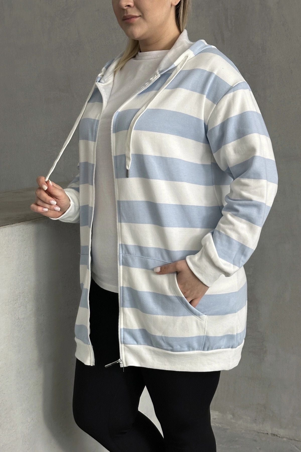 Büyük Beden Uzun Kollu Kapüşonlu Cepli Fermuarlı Hırka 74-104