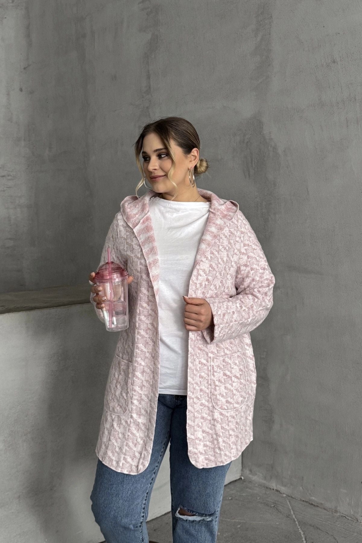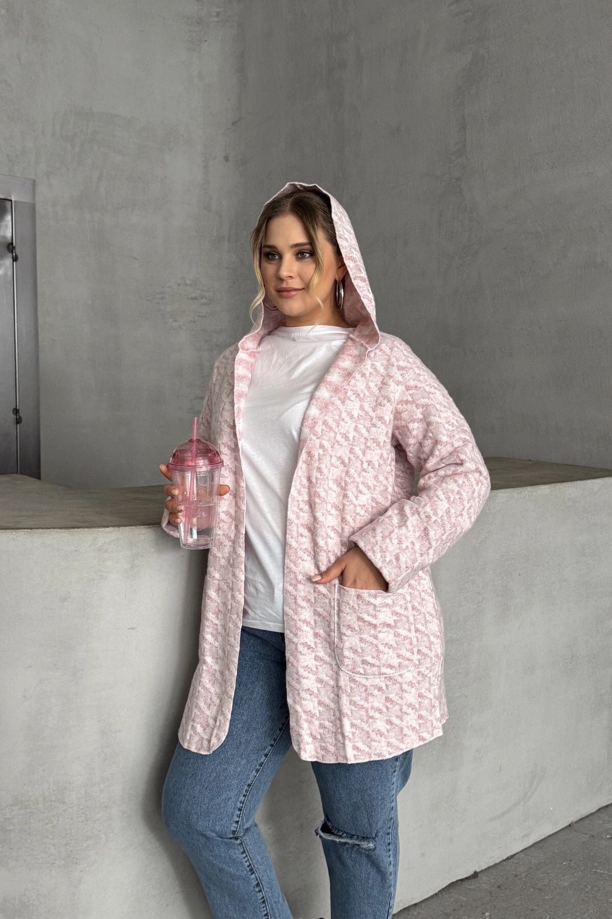 Pembe tonda çiçekli desenli bu şirin hırka, hem tatlı hem de şık bir görünüm sunar! İnce kumaşından üretilen bu hırka, yumuşak dokusu ve rahat kalıbı ile gün boyu konfor sağlar. Kapüşonlu tasarımı ve ön cepleri fonksiyonel kullanım imkanı verirken, önü kapamasız açık kesimi kolayca giyim çıkarım sağlar. Pembe çiçekli desen ile feminen bir hava yakalayan bu parça, beyaz tişört ve jean kombinasyonuyla günlük şıklığınızı tamamlar. Mevsim geçişlerinde ideal olan bu hırka, hem evde hem de dışarıda rahatlıkla kullanabilirsiniz. Makinede yıkanabilir özelliği ile bakımı kolay olan bu hırka, gardırobunuzun sevimli ve rahat parçası olacak.
