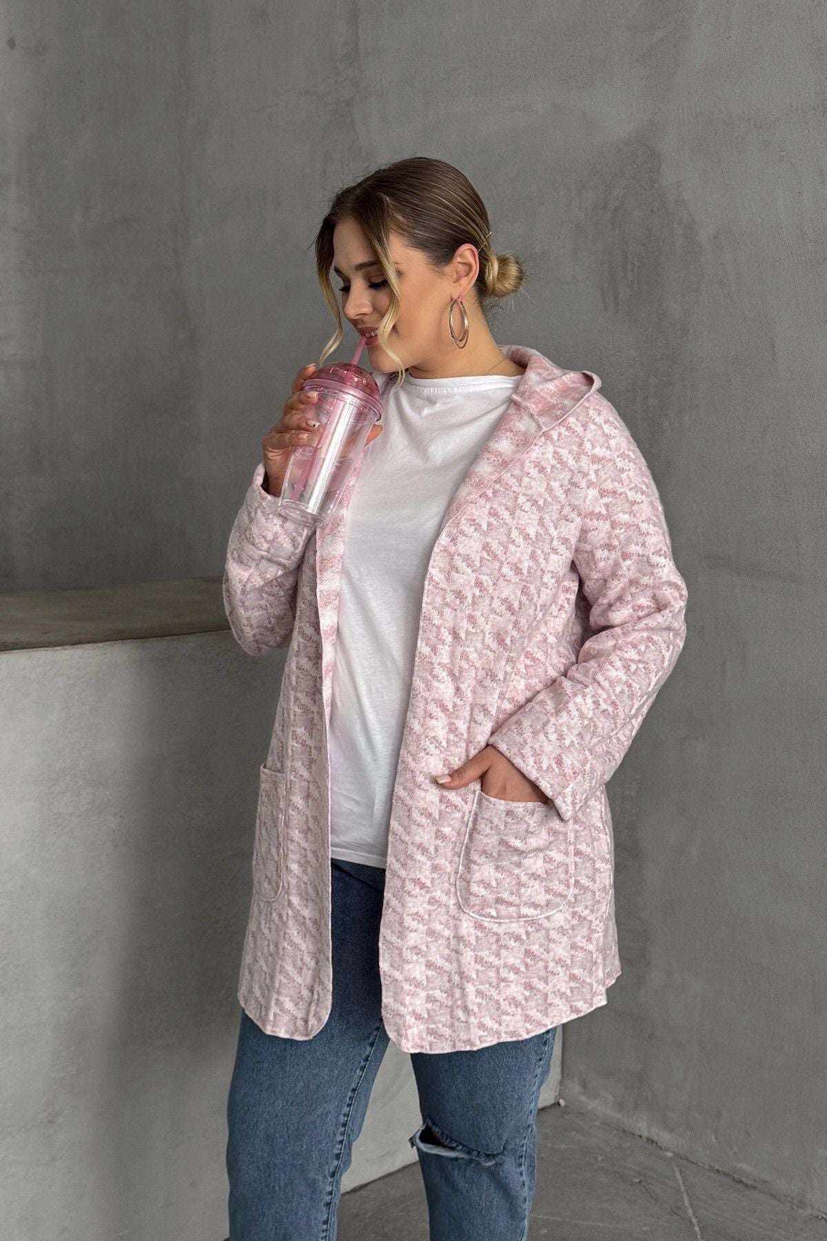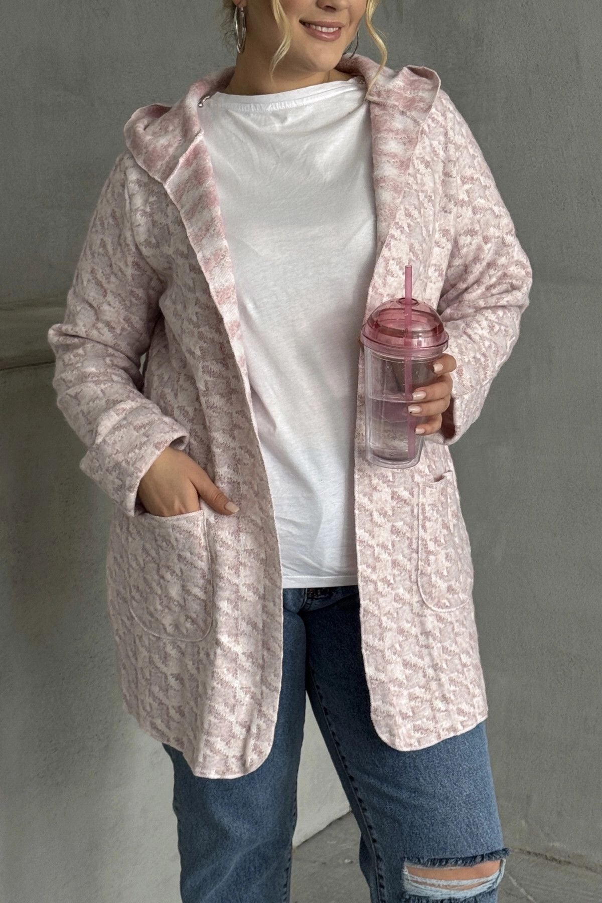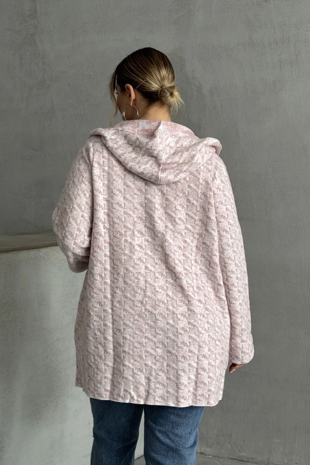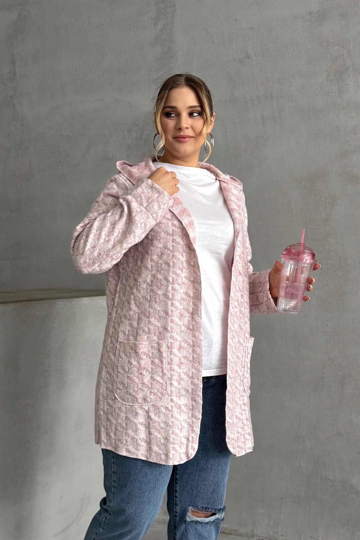 Büyük Beden Uzun Kollu Kapüşonlu Cepli Önü Kapamasız İnce Hırka 301794