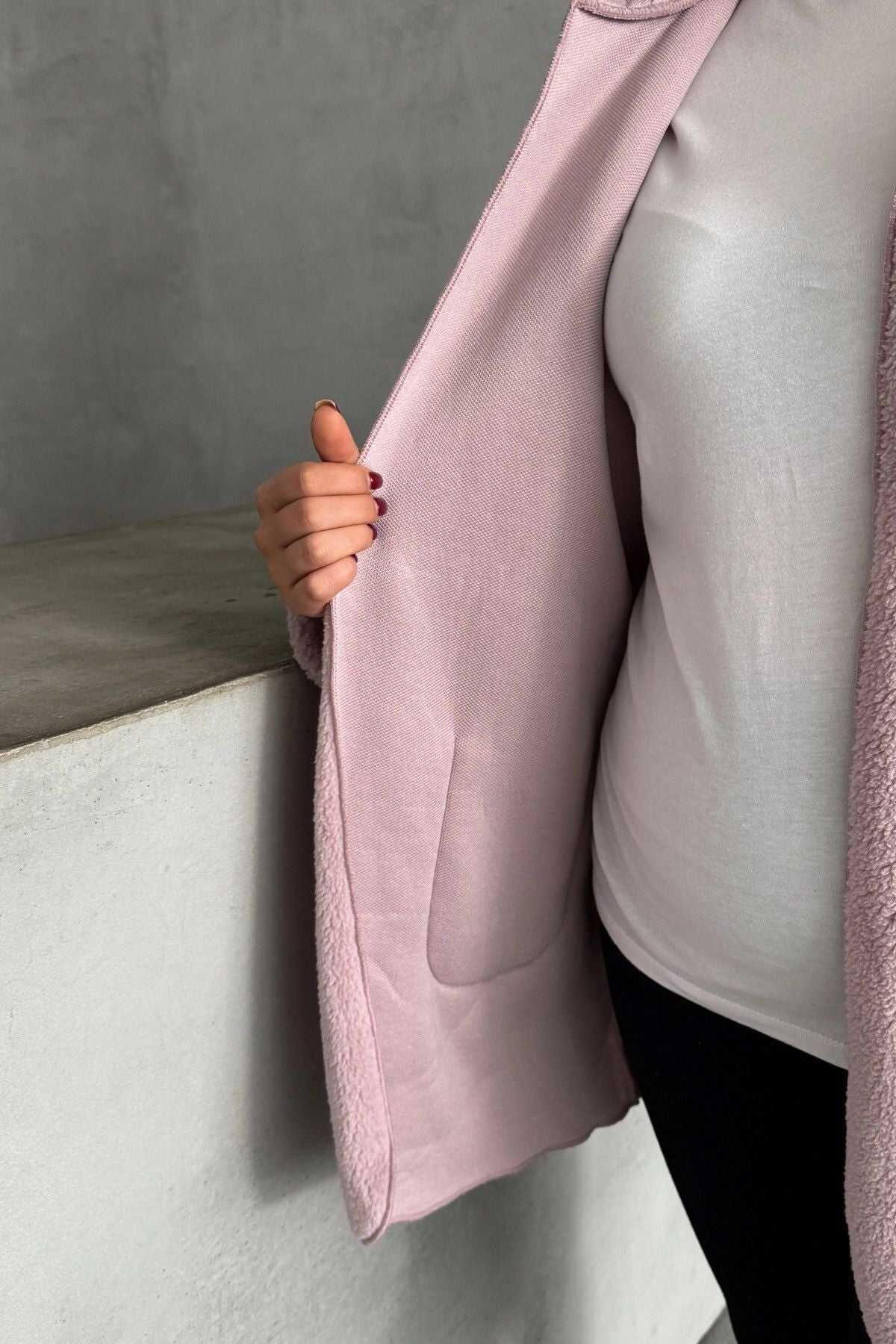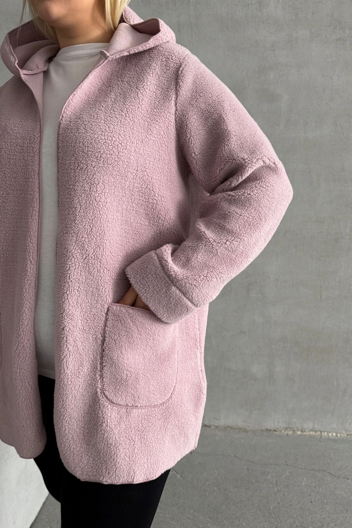 Yumuşak dokusuyla konfor sunan bu peluş ceket, uzun kollu ve kapüşonlu tasarımıyla soğuk günlerde sıcacık bir tercih. Önü kapamasız yapısı ve kullanışlı cepleriyle hem şıklık hem de pratiklik sağlar. Günlük kombinlerinize hem rahatlık hem de tarz katacak ideal bir seçenek!