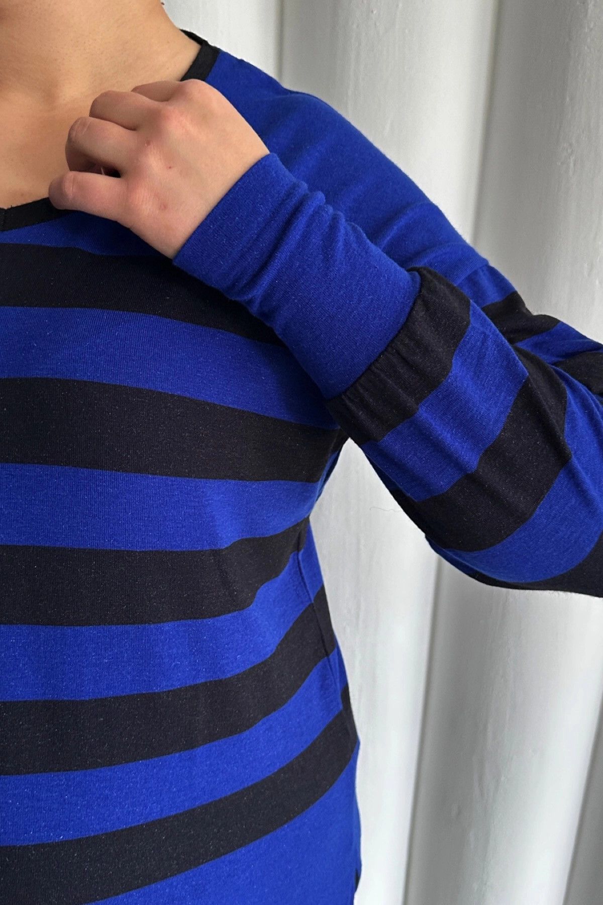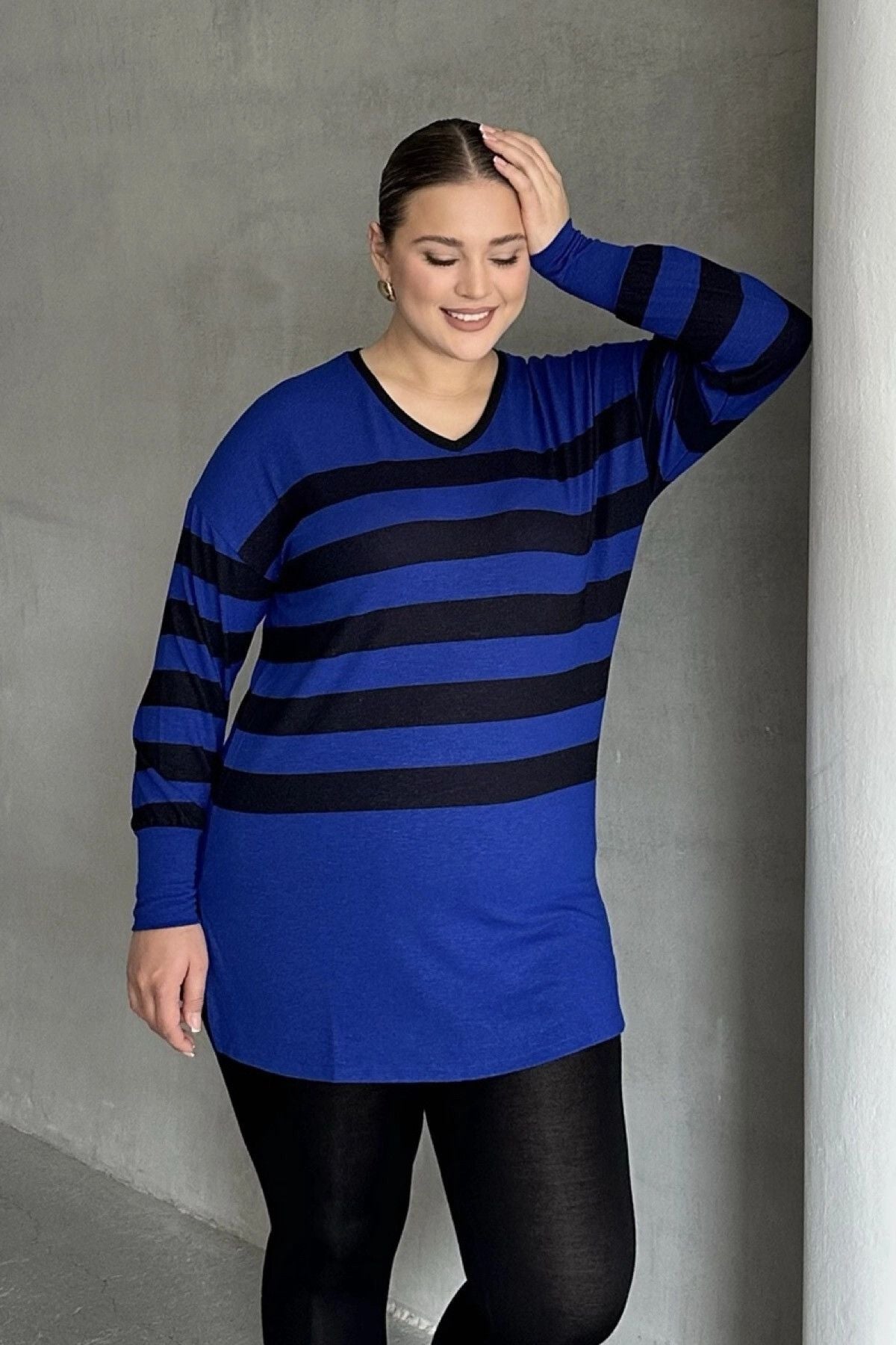 Moda Notu: Klasik çizgili desenin modern bir yorumu olan bu V yaka uzun bluz, rahatlığı ve şıklığı bir araya getiriyor. Yandan yırtmaç detayı hareket özgürlüğü sunarken, ince kumaşıyla konforlu bir kullanım sağlar. Tayt veya dar paça pantolonlarla mükemmel bir uyum yakalayarak günlük stilinizi tamamlayabilirsiniz.