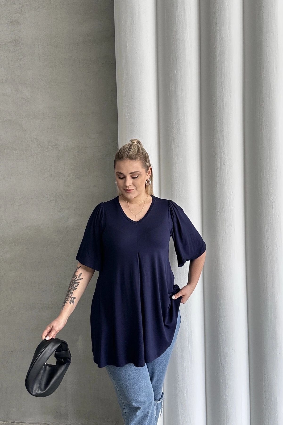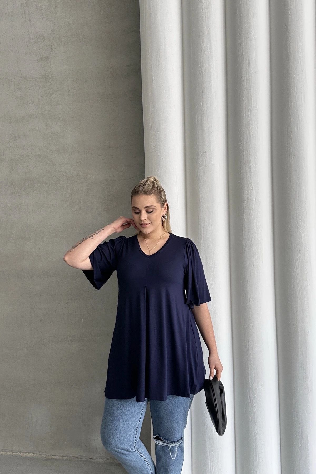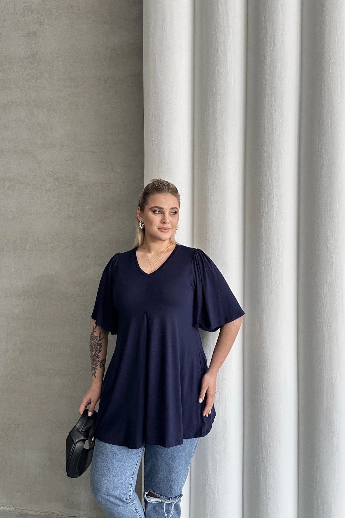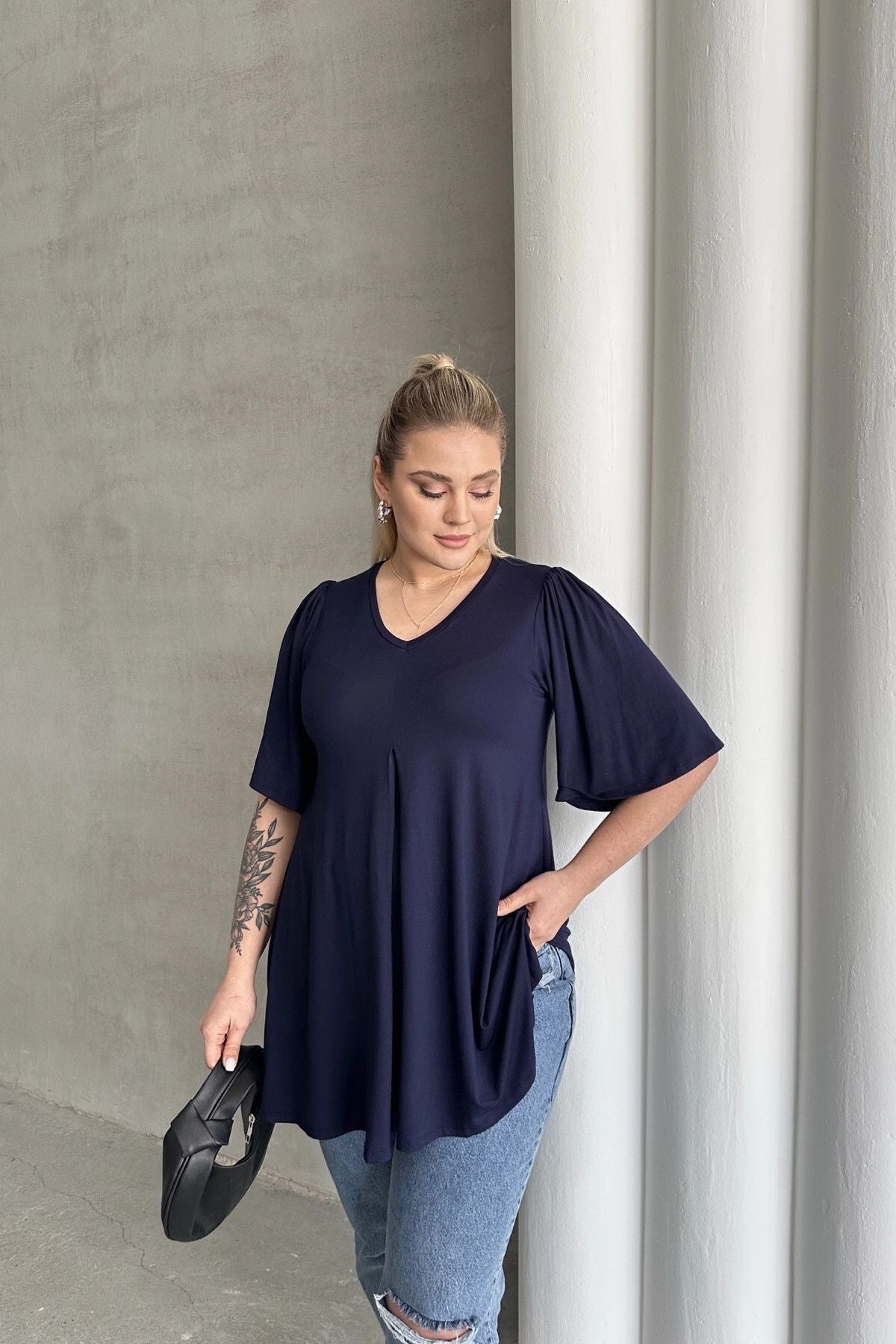 Büyük Beden V Yaka Desensiz Asimetrik Kesim Likralı Bluz MDL-6