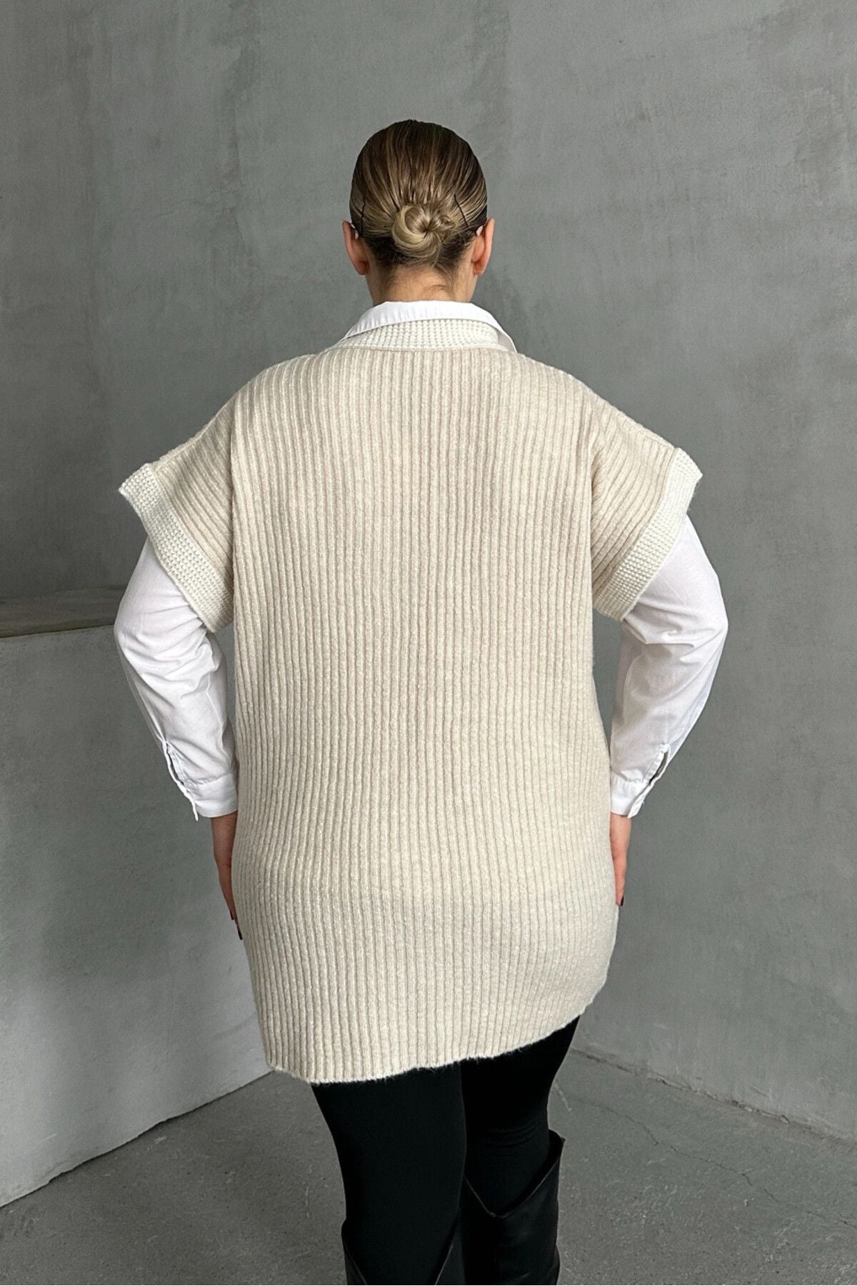 Büyük Beden V Yaka Kısa Kollu Triko Süveter 302137