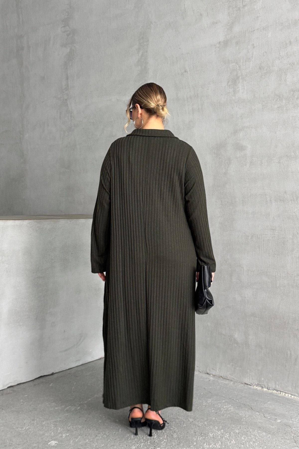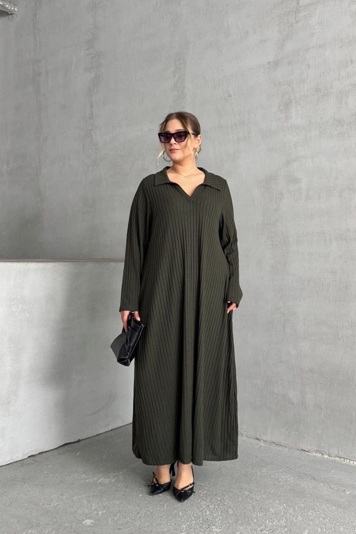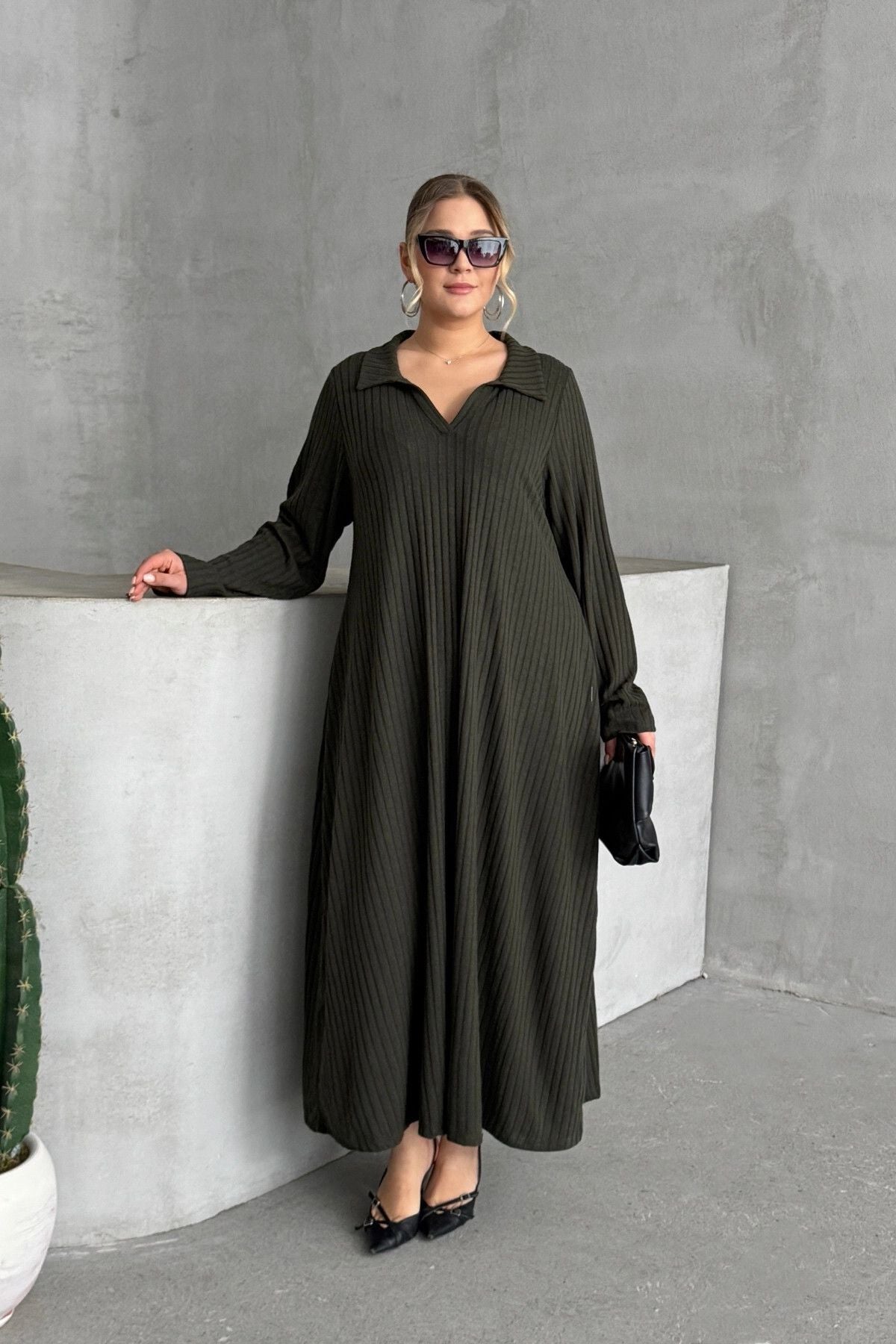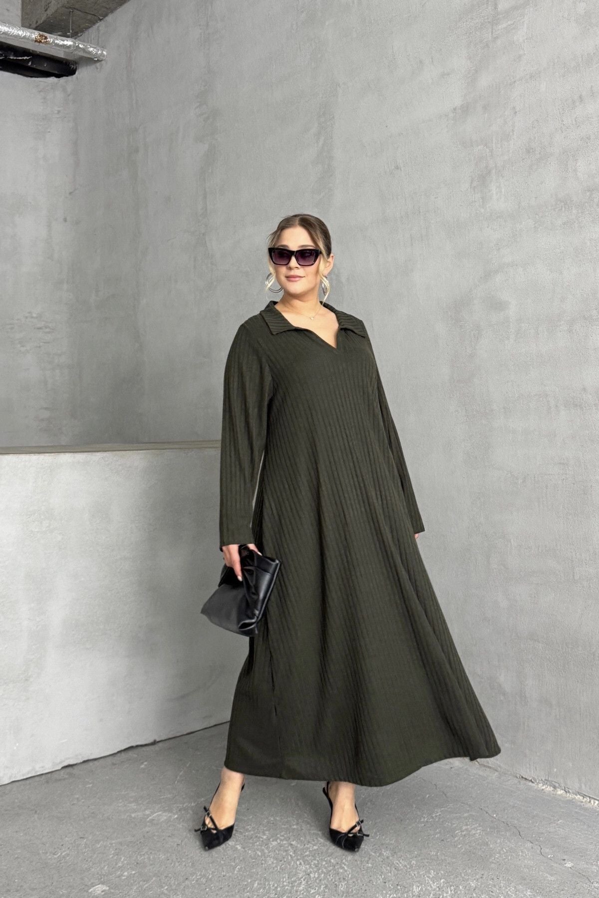 Moda Notu: Zarafeti ve konforu bir araya getiren bu fitilli maksi elbise, gardırobunuza sofistike bir dokunuş katıyor. Gömlek yaka detayı ve rahat kesimiyle hem günlük şıklık hem de özel anlar için ideal bir tercih. Topuklu ayakkabılar ve şık aksesuarlarla kombinleyerek göz alıcı bir stil yaratabilirsiniz.
