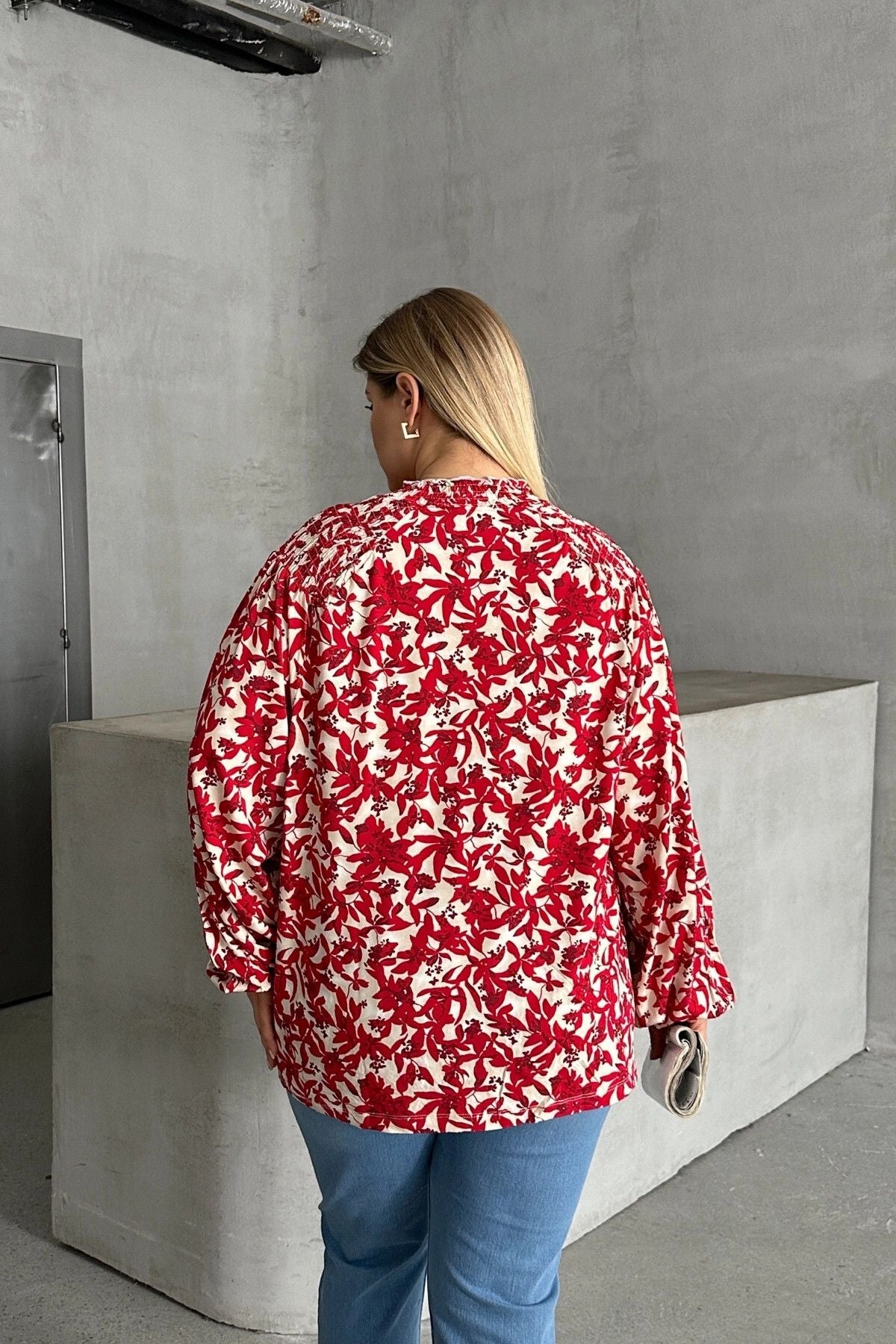 Moda Notu: Çiçek desenlerinin enerjisini yansıtan bu bluz, fırfırlı hakim yakası ve balon kol detayıyla romantik bir stil sunuyor. Jean pantolonlarla kombinleyerek hem günlük hem de şık bir görünüm elde edebilirsiniz.