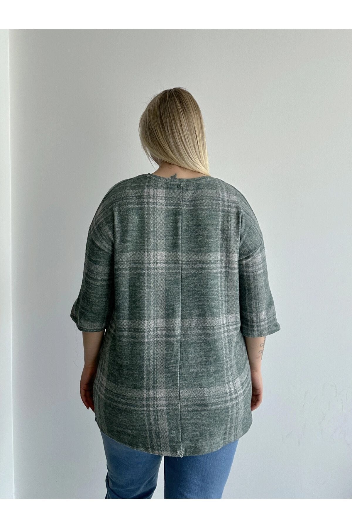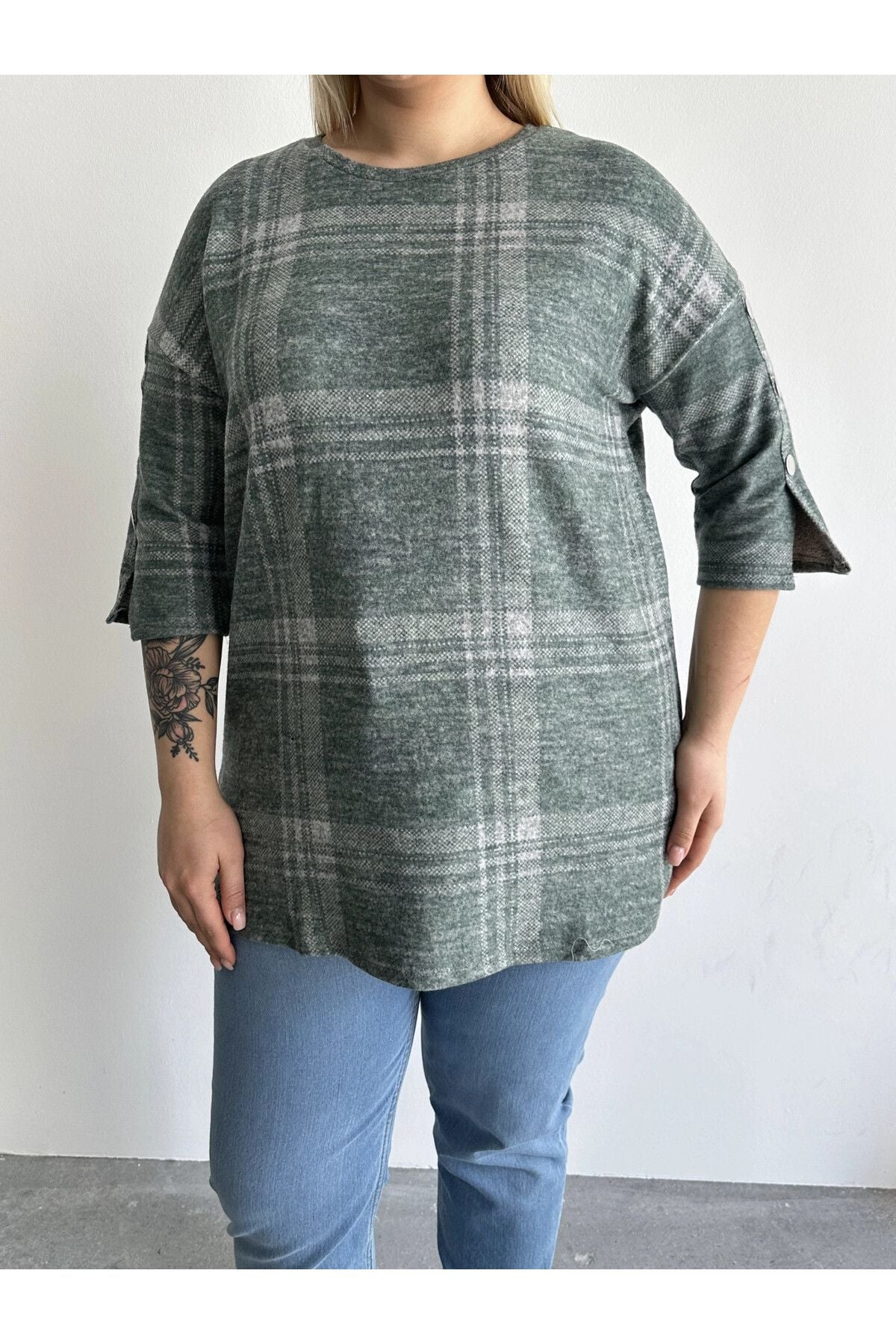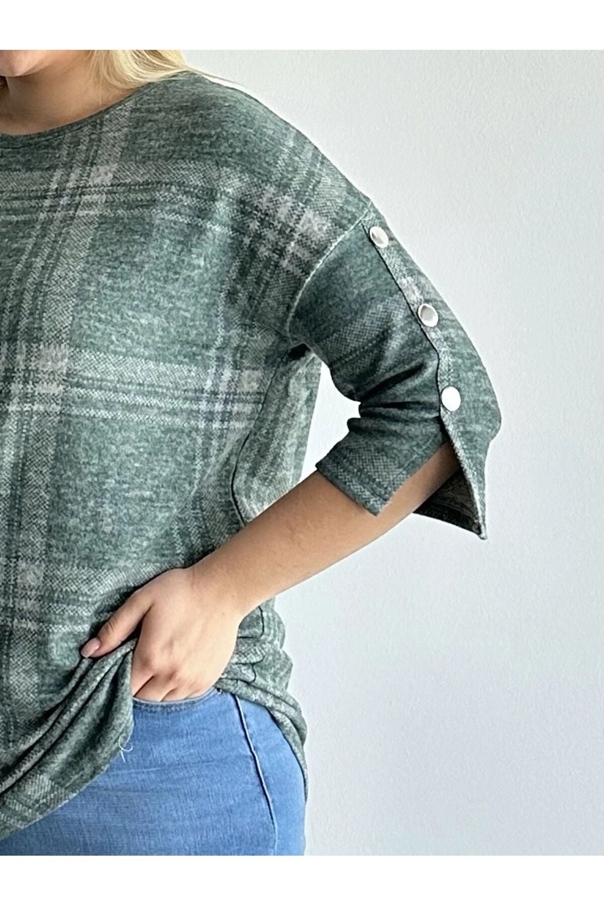 Model Detayı: Ekose Desenli, Yuvarlak Yaka, Düğme Detaylı Yırtmaçlı Kol, Tunik
